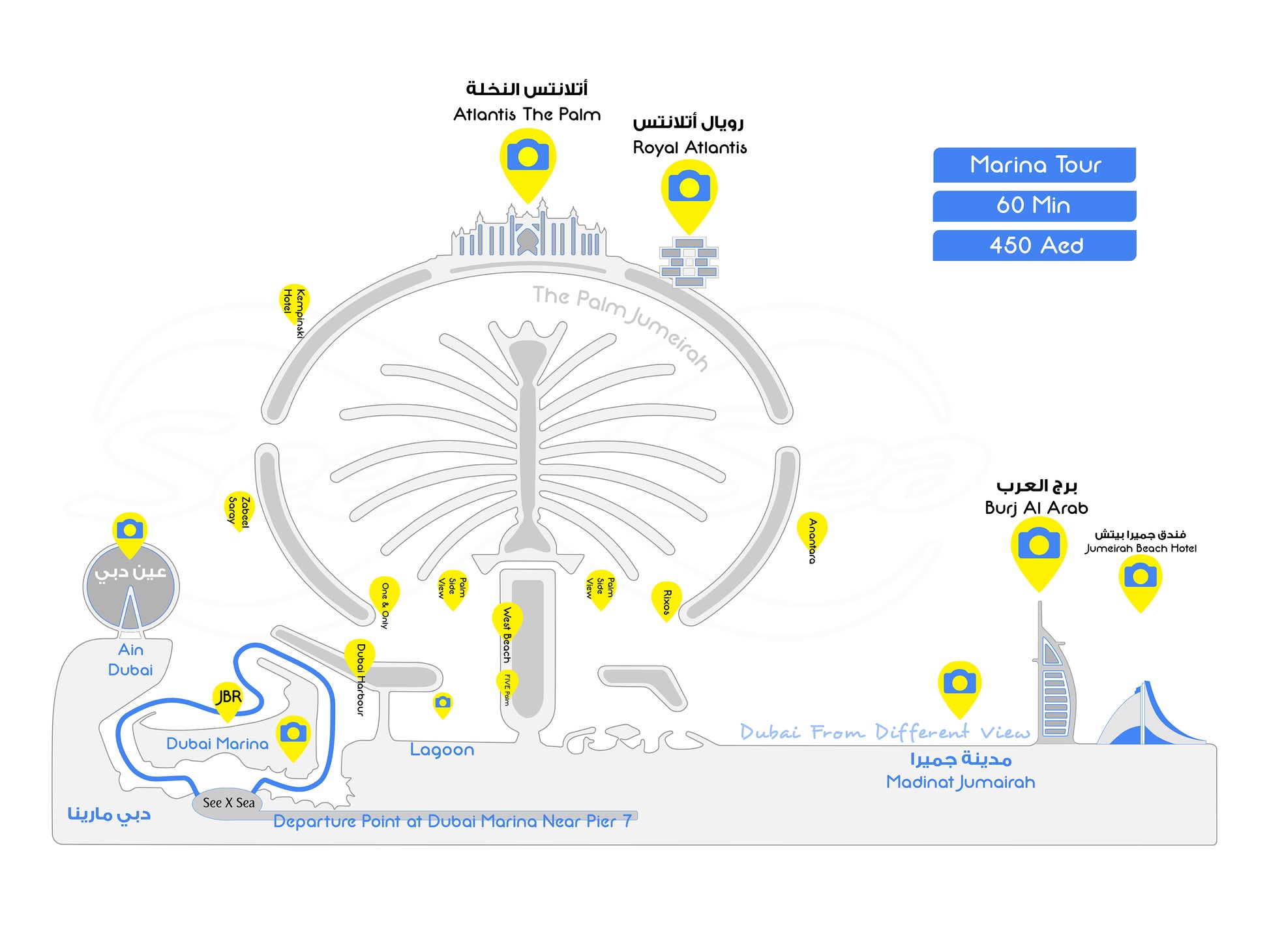 Experience the Marina Panorama Tour, a 60-minute adventure around Dubai Marina. See iconic landmarks and stunning panoramic views of the marina and Dubai skyline. Book now to capture unforgettable memories and discover the hidden gems of this bustling neighborhood.
